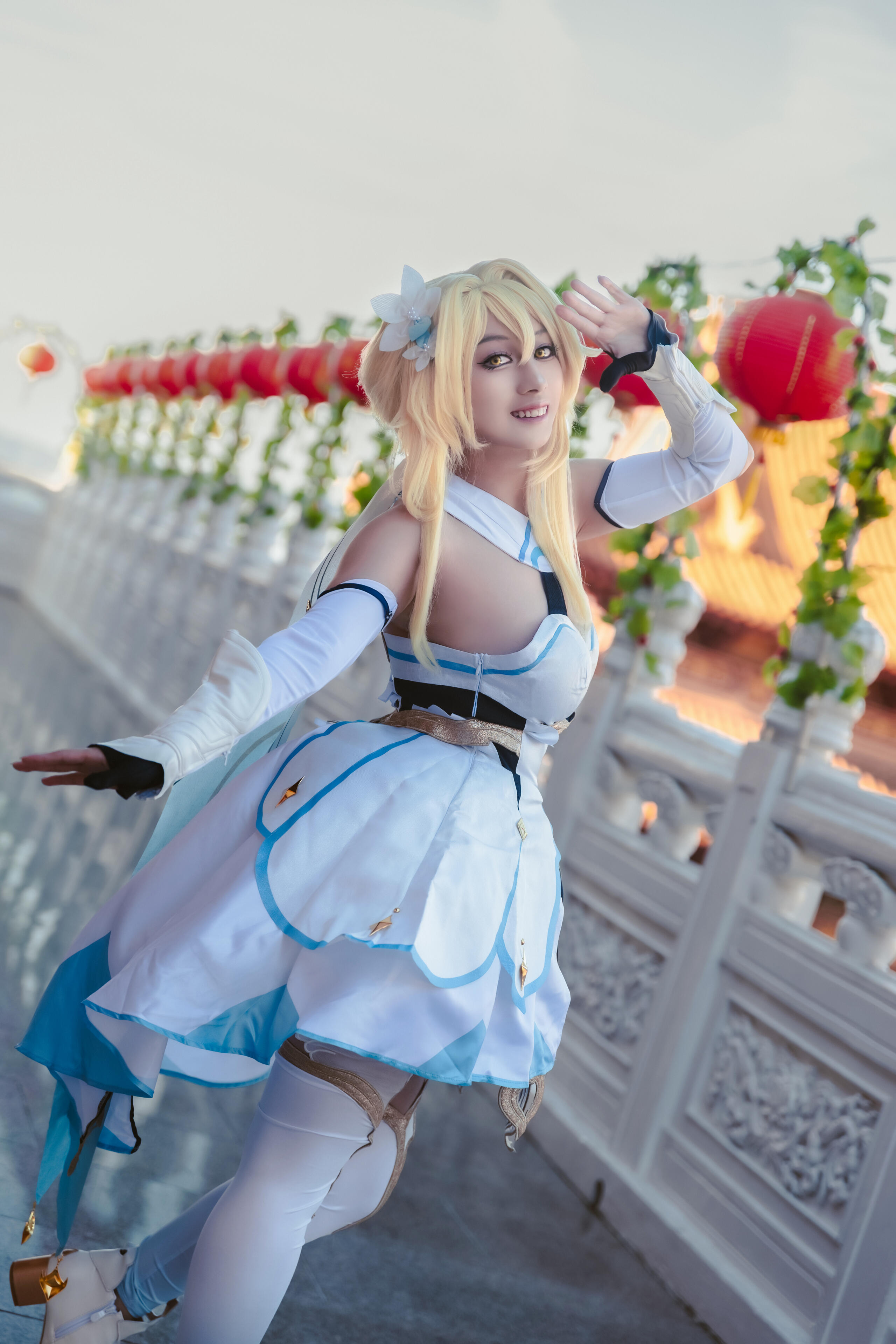 Lumine is a traveler from another world who finds herself in the world of Teyvat. Setting out on a journey to find her lost sibling, Lumine encounters and befriends many people along the way. Today, she takes a break in her journey to celebrate the Thousand Lights Festival with all her friends in Liyue.